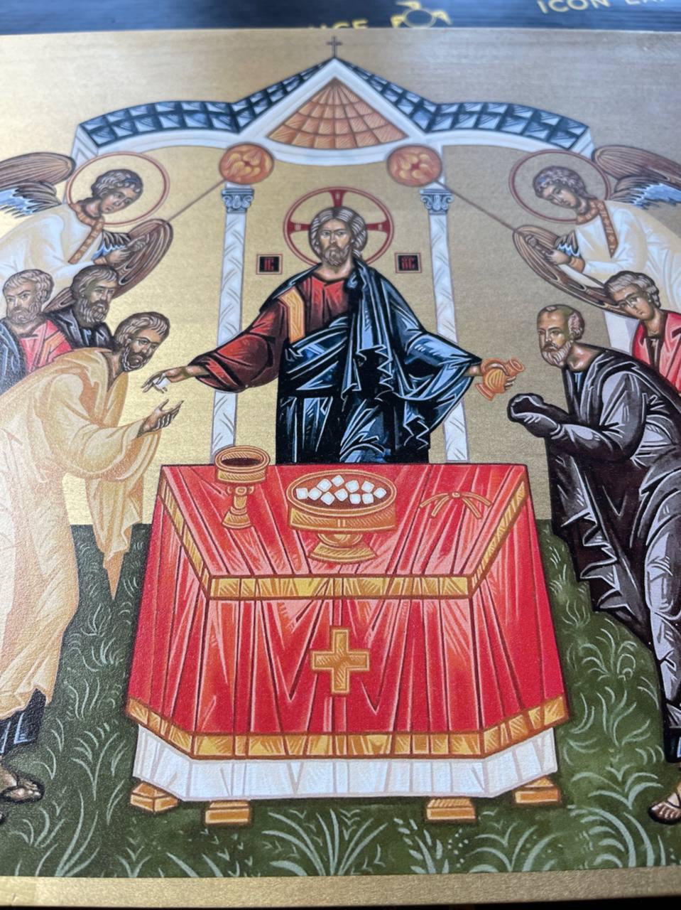 Una réplica de alta calidad del icono original de la Sagrada Comunión en madera.