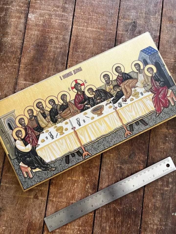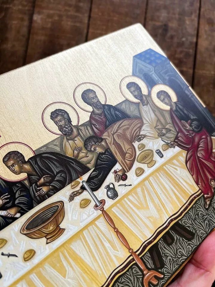 Una réplica de alta calidad del icono original de la Última Cena en madera realizada por nuestro estudio.